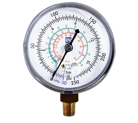 Blue compound, kg/cm² & psi Press. Scale: -30-0-250 psi Refrigerants: R12, 22, 134a with access port